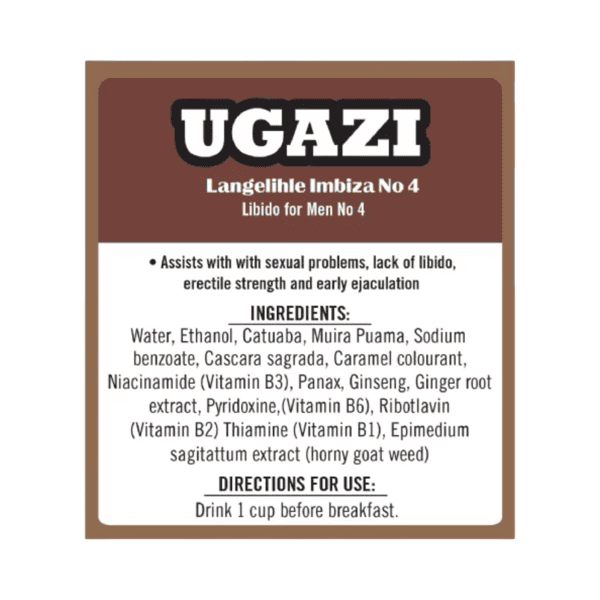Ugazi No.4 Libido for Men – 1 Litre is a traditional herbal wellness tonic formulated to support male vitality and overall wellbeing. Many men include herbal tonics in their wellness routines because they complement healthy lifestyles and help maintain daily energy and confidence.